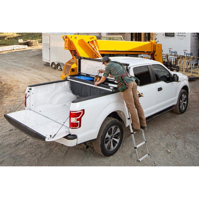Denna modell av DECKED Tool Box inkluderar en utdragbar stege.