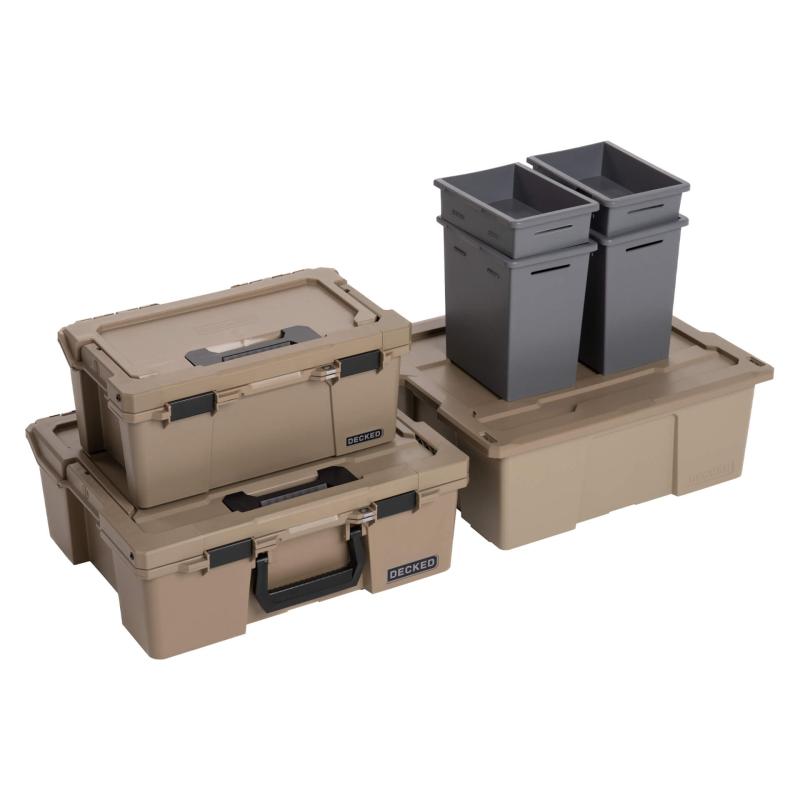 De stora förvaringslådorna till DECKED förvaringssystem är större i storlek samt mer kantiga, vilket gör att de rymmer 30 % mer än tidigare lådor. Förvaringslådorna kan även dras ut längre än tidigare, vilket möjliggör extra förvaring. Lådorna för full-size pickuper kan lasta upp till 90 kg, medan lådan för mid-size pickuper kan lasta upp till 180 kg.