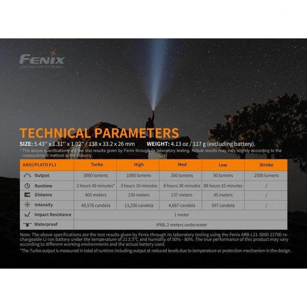 · Turbo - 3000 lumens/2,4 timmar/400 meter