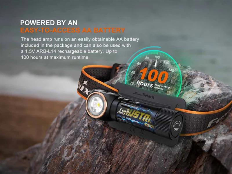 HM23 togs fram med enkelhet och låg vikt som främsta mål. Lampan väger endast 86,3g (Inkl batteri) vilket gör att den kan följa med på både långturen och löpspåret utan att knappt märkas. Den neutralvita dioden på 240 Lumen ger ett mjukt och färgkorrekt ljus som passar både arbete och nöje nattetid. Eftersom lampan drivs med ett av världens vanligaste batterityper (AA) så är risken minimal att du blir strandsatt med tomt batteri.