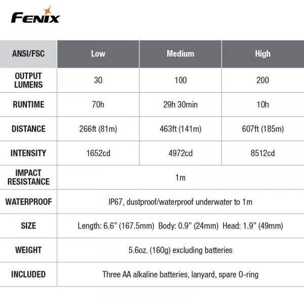Fenix WF11E Ficklampa Explosionsäker ATEX IECEx CSA 200Lm