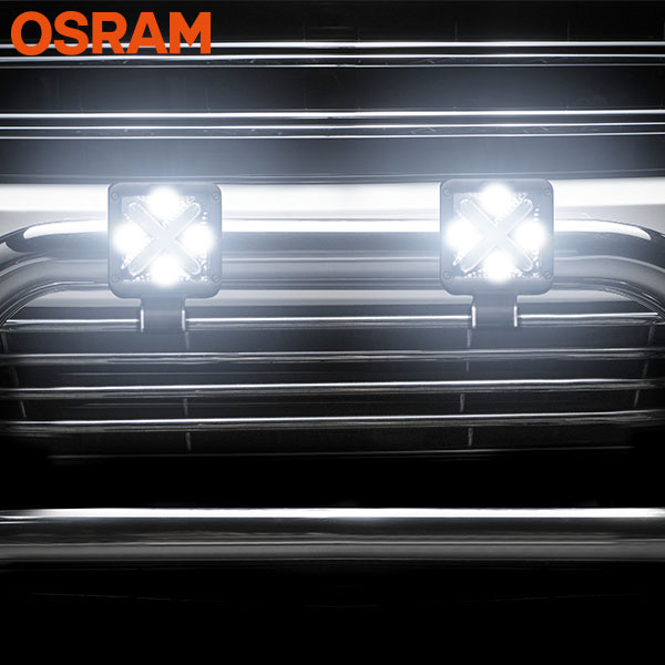 För första gången har världskända Osram gjort egna arbetsljus och extraljus! CUBE-X är utvecklat som ett arbetsljus till maskiner, pickup eller arbetsfordon med 12V eller som extraljus till ATV och MC m.m. med ett riktigt snyggt X-format DRL i mitten och 4st starka 10W Osram lysdiods som drivs på ca 5,5W / styck för att maximera lumen per watt.